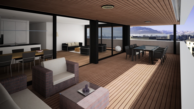 Um optimal auf die Gegebenheiten des Ortes, die Topographie, sowie auf die Massstäblichkeit der Überbauungen in der Nachbarschaft zu reagieren und um eine städtebaulich, wie auch architektonisch vorzügliche Lösung für das Siedlungsbild und die Gestaltung der Umgebung zu erreichen, wurden die Geschossflächen auf lediglich vier Bauvolumen verteilt. Die Architektursprache aller vier Baukörper reduziert sich konsequent auf die horizontale Schichtung der rundumlaufenden Balkonbrüstungen, welche einerseits konzeptionellen Schallschutz für die zurückversetzten Wohn- und Schlafräume bieten und andererseits die Gebäudemasse optisch leicht wirken lassen. Die Setzung der einzelnen teilweise 4 bis 5-geschossigen Baukörper (Vollgeschosse) schafft die städtebaulich angestrebte Ensemblewirkung mit grossen zusammenhängenden Freiräumen zwischen den einzelnen Bauten und gegenüber den Nachbarschaften, erreicht aber auch optimale Ausrichtungen der einzelnen Wohneinheiten. So entstehen wohlproportionierte Aussenräume und konzeptionell bedingt eine bewusste Gewichtung des grosszügigen Quartierplatzes zwischen den geplanten Bauvolumen und den höher geschossigen Mehrfamilienhäusern in der Nachbarschaft im Südosten. Dies ermöglicht die Zuweisung geeigneter Spielflächen. Es ergeben sich vielfältige Sichtbezüge und unterschiedlich stark definierte Aussenräume. Diese Einheitlichkeit der Bebauung wird durch den Umgang mit den Aussenräumen ver-stärkt. Im Sinne einer naturnahen Gestaltung der Freiräume, welche die Bauten umge-ben, werden mit dem Einbezug des teilweise bereits heute bestehenden, bepflanzten Erdwalles entlang der Knonauerstrasse ein natürlicher Lärm-/ und Sichtschutz und gleichzeitig ein klarer Abschluss der Siedlung zur Umfahrungsstrasse geschaffen.